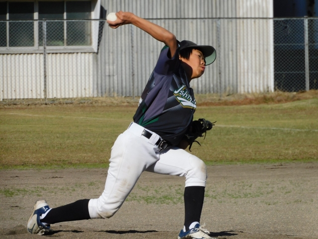 2試合目の先発はリオン。1回表は無得点で切り上げるも調子は今ひとつ。そのウラに1イニングに4つの2ベースを含む6安打で9点を取り優位に進めることができます。これだけ点数を取れば楽にピッチングしてくれるハズなんですが、リオンは相変わらずの制球難。四球とエラーで満塁になったところで特大満塁弾を浴び4-10とイヤな感じにゲームは進みます。石薬師クラブも2回以降、毎回得点しましたが、失点も毎回続いてしまい14-10で勝利したものの、ギリギリ逃げ切ったという内容でした。