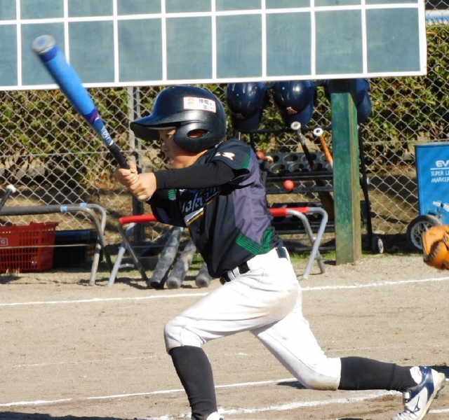 次に試合が動いたのは3回表。8番リイトが三振のあと、9番ホノカが四球で塁に出ると、続く1番宮路ハヤトも四球、盗塁などで23塁のチャンスで2番カナタを迎えます。期待はMAXでしたが、ピッチャーゴロでアウトかと思いきや、3塁ランナーのホノカが挟まれ右往左往している間に相手が後逸して同点。続いて3番リオンのセーフティバントが相手のミスを誘い、この回4点を挙げることができました。そのウラに1点を返されるものの、5回に宮路ハヤト、カナタ、ジン、ホノカのヒットや四球などで一挙8点を奪い12-2で勝利。