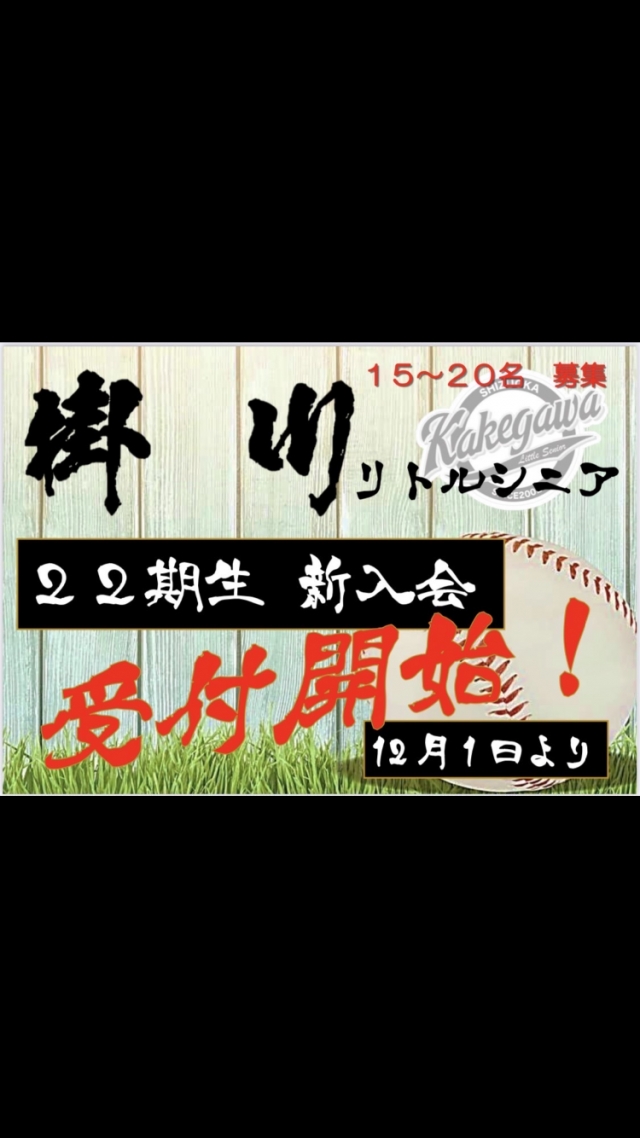 12月1日(木) より22期生(新1年生)の入会受付を開始致します。