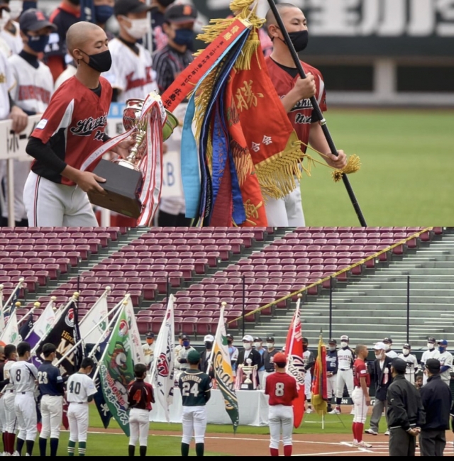 「宣誓。僕たち選手一同はコロナ禍の中、この大会が開催されることに感謝し、このグラウンドで大好きな野球ができることに感謝し、ご指導くださる監督やコーチ、応援してくれる家族に感謝し、共に汗を流した仲間との絆を胸に全力でプレーし続けることを誓います。」