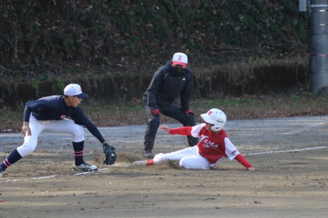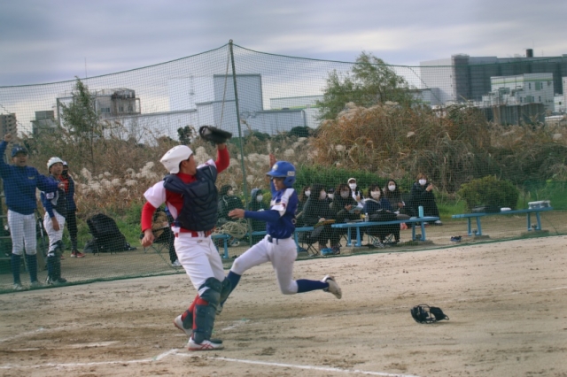 土曜の羽田アンビシャスさんとは両チーム木製バットでプレイボール!好投する投手の前に長打が出ませんが、走塁やミスからのチャンスをものにする集中力でお互いに得点を重ねるナイスゲーム。