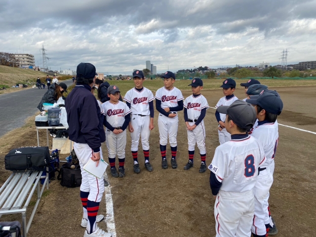2試合目は大谷戸小田中さんとの試合。エースが5イニング、7つの四死球とコントロールに苦しみながらも被安打1、8奪三振と粘りの投球をみせ、守備陣もキャッチャーの盗塁阻止を含めノーエラーとしっかり守ることができました。攻撃も満塁からのランニングホームランなど、フォアボールで出塁したランナーをヒットで返すことができたのはよかったと思います。