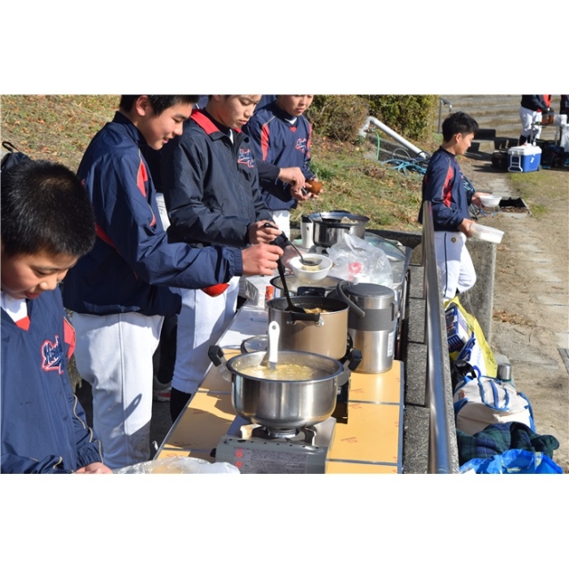 12月25日は各家庭にご協力いただき豚汁の炊き出しを行いました、寒風の中の練習で選手もお裾分け頂いた父兄は心も体も温まった一日でした。選手は勿論父兄も何杯もおかわりしていました。