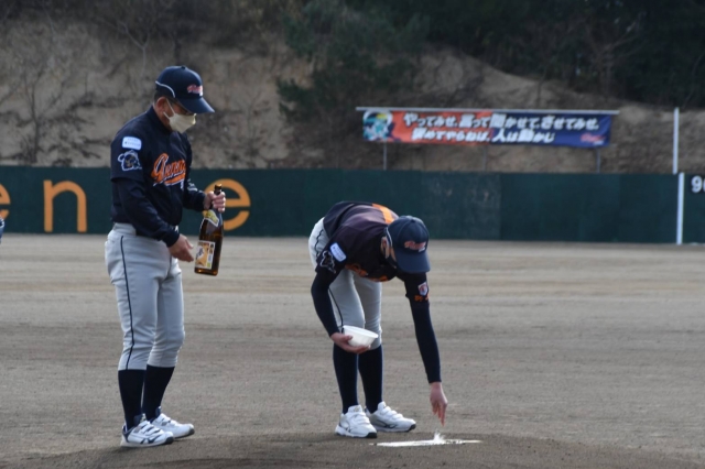 その後富博記念球場に移動し、今年1年が怪我・事故なく活動できるよう、グラウンドの安全祈願を行い活動を開始しました。
