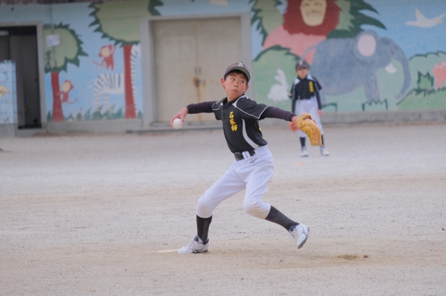 まずは第一試合。先攻は神戸フェニックス。先頭打者を四球で出すと、すかさず盗塁を決められてしまいます。その直後にレフトオーバーを打たれ、あっさり1点を献上してしまいます。後攻の石薬師は、そのウラ、先頭の宮路ハヤトがセンター前2ベースヒットを放つとリクのライト前タイムリーヒットで同点に追いつきます。相手ミスもあり、この回4点を取り4-1と優位に試合を進めるのは、昨年までの話。3イニングでへばってきたリクに代わり4回からは宮路ハヤトに投手リレーするもピリッとしません。四球やワイルドピッチ、守備のエラーなどで4-4の同点に追いつかれ、5回には4回に続き2点を奪われてしまい4-6で最終回の石薬師の攻撃へと移ります。打順は6番のコウダイから・・・。何とか相手ミスもありましたが同点に追いつき、2アウト満塁で4番リクを迎えます。サヨナラ勝ちをしたかったのですが、ピッチャーフライに倒れゲームセット。2023年の練習試合は引き分けスタートとなりました。