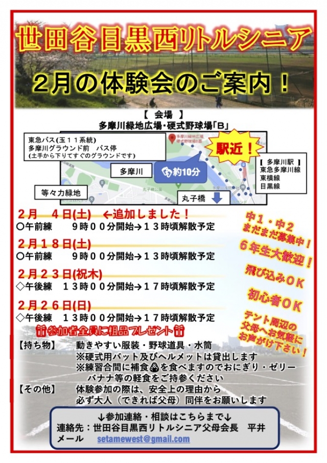 > 2月の体験会の予定をアップしました