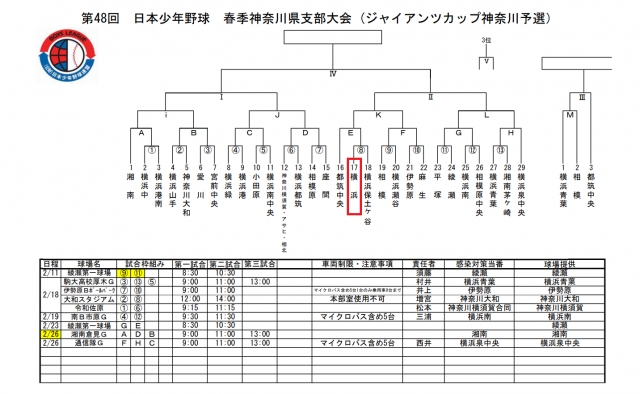 > ⚾️第48回 春季神奈川県支部大会 組み合わせ決定⚾️