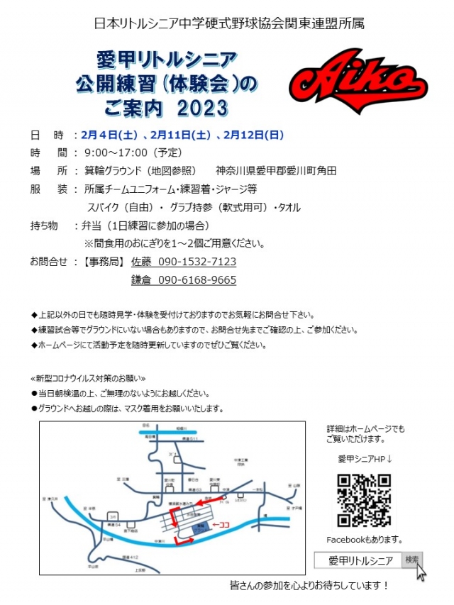 今週末も11日(土)、12日(日)と公開練習を行います。“いくつかのチームに見学に回っているが、どうしようかな” “まだ、中学の部活にしようか迷っていて体験会に行ったことないけど、どんな練習しているのかな?” 色々な思いを抱えている事と思います。ぜひ、愛甲のグランドへお越し頂き、練習体験してみませんか?