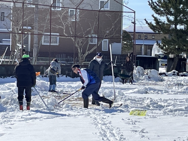 イャッホー、15㎝くらい積もってて、野球グランドって広いんだぜ?