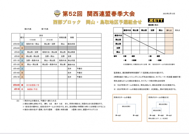 第52回関西連盟春季大会西部ブロック岡山・鳥取予選