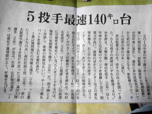 ★★京都八幡シニアOB 履正社高校 高木大希君 が毎日新聞に!!★★