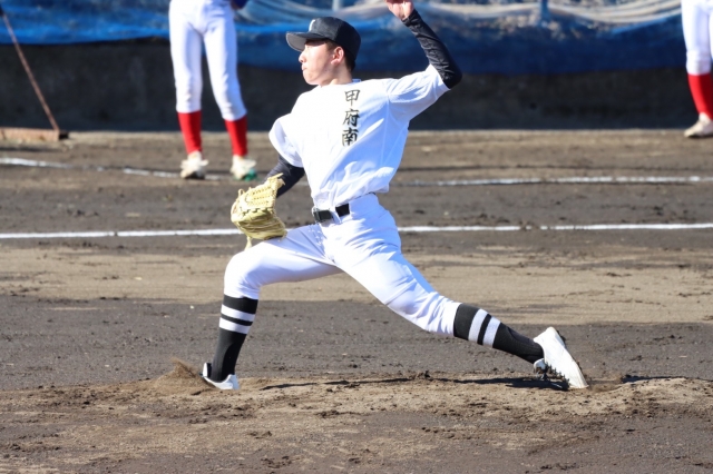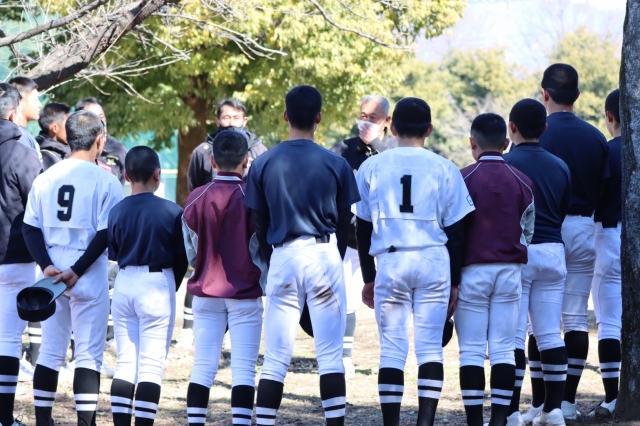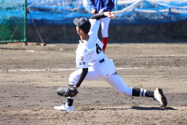 厳しい寒さを吹き飛ばすような熱い闘志と共に3回戦が始まりました。二回、四死球で出塁したランナーをバンドで送り、犠牲フライで先制点をもぎ取る。三回裏、ランナーを3塁まで進められ内野ゴロの間に1点を献上し、1対1の緊迫したゲーム展開となった。迎えた五回表、ノーアウト満塁のチャンスから連続安打で3点を奪うと、さらに1点を追加。その後、相手の粘りもあり2点差まで詰め寄られるも、気持ちの入った守りでなんとか逃げ切り5-3で勝利!