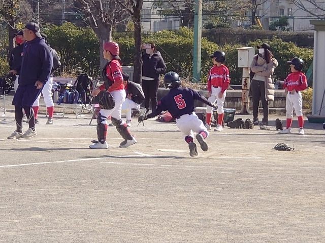 新チームになり最初の公式戦を迎えました。MIZUNO BASEBALL DREAM CUPの1回戦、多摩区の星ヶ丘キッズさんと西菅小学校で対戦させてきただきました。5年生7人のうち2名を欠く苦しい状況での試合となりましたが、なんとか勝つことができました。今日の試合は守備で光るものが多かったです!投手とショートの連携による牽制アウト、捕手の矢のような送球による盗塁阻止、1アウト1塁、ショートへの打球をショートが捕球したあと自らセカンドベースを踏み1塁に送球して成立させたダブルプレー。投手陣も先発投手が調子が上がらない状況でも粘り強い投球で4イニング無失点、5回からマウンドにあがった投手も力強いストレートで打者7人被安打1、奪三振6と相手に流れをわたさず無失点と頑張ってくれました!一方攻撃は…相手投手陣の丁寧な投球の前にヒットは2本のみ。得点はダブルスチールでの1点と1アウトランナー3塁からの内野ゴロでの1点の計2点でした。攻撃面、そして内野と外野の間のフライを2つヒットにしてしまったことについては大いに反省すべきではありますが、この苦しい状況で勝てたことは今後に必ずつながると思います。星ヶ丘キッズさん、試合ならびにグランド提供ありがとうございました!引き続き、よろしくお願い致します。