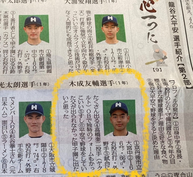 卒団生が新聞に紹介されました
