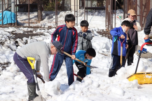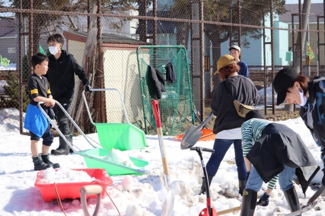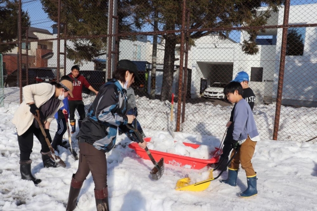 それに向けて父母と子供たちで雪割りを行いました!