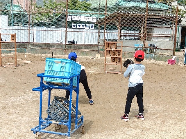 キャッチボールやティーバッティングなどをして、希望の子どもたちはノックを受けました。