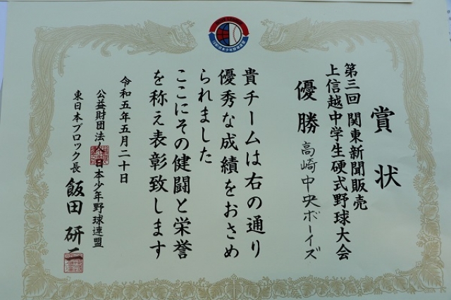 優 勝 高崎中央ボーイズ