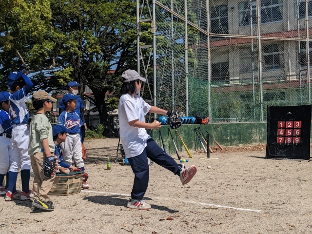 神戸小学校以外のお友達も参加してくれ、新メニューストラックアウトやスピード計測、ミニハードル、ポイントカードでお菓子をゲットし大いに盛り上がりました!