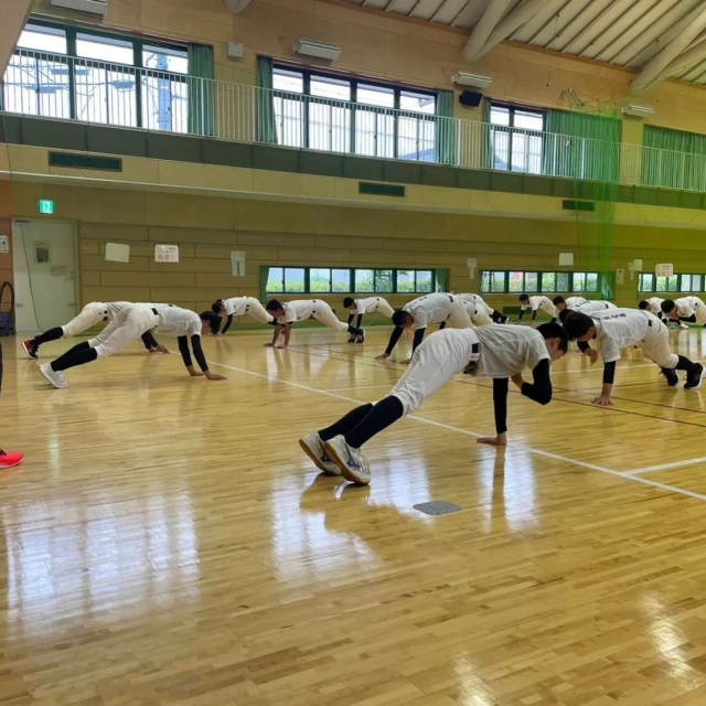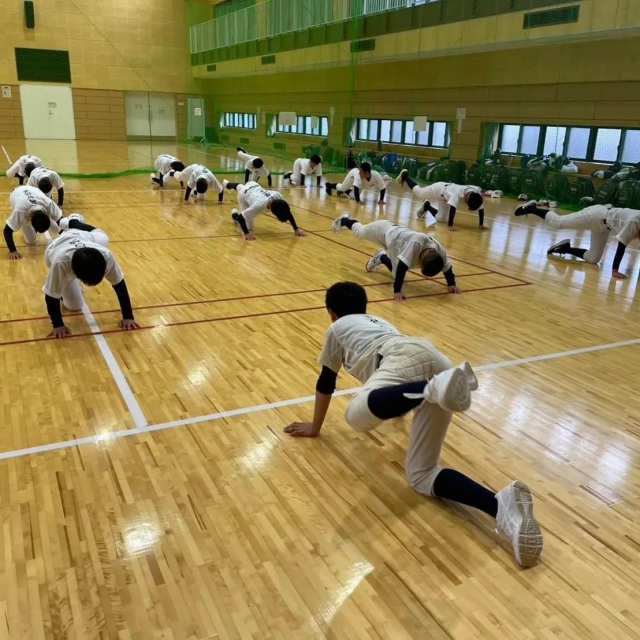 > 雨のため体育館で体幹トレーニングを中心に行いました‼️