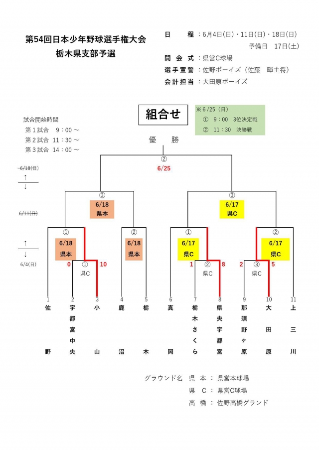 【第54回選手権大会栃木県支部予選トーナメント表】