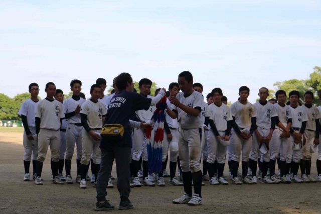 かわきたグラウンドにて来る「日本選手権関西大会」必勝を祈願し、チームみんなで作った「千羽鶴」、母たちが気持ちを込めて作った「マスコットお守り」を選手たちに送りました!