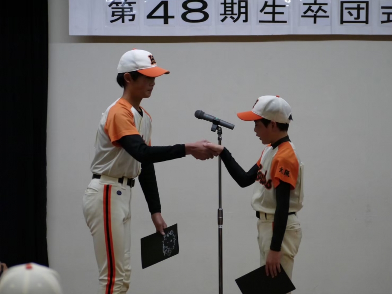 順序が後先になりましたが、1月29日に第48期生2名の卒団式を