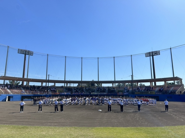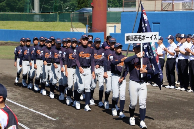 セブンナッツスタジアム(伊勢崎市野球場)にて、「第54回日本少年野球選手権大会 群馬県支部予選」の開会式が行われ、17チーム選手たちの入場行進はとても盛大でした。