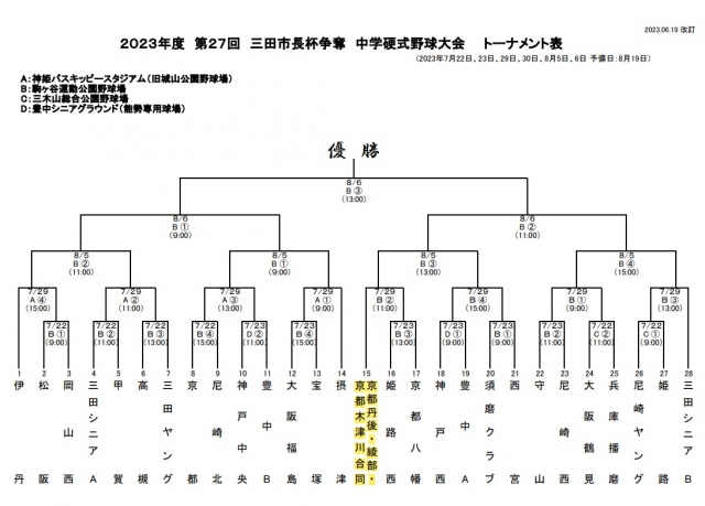 第27回 三田市長杯争奪 中学硬式野球大会 トーナメント表