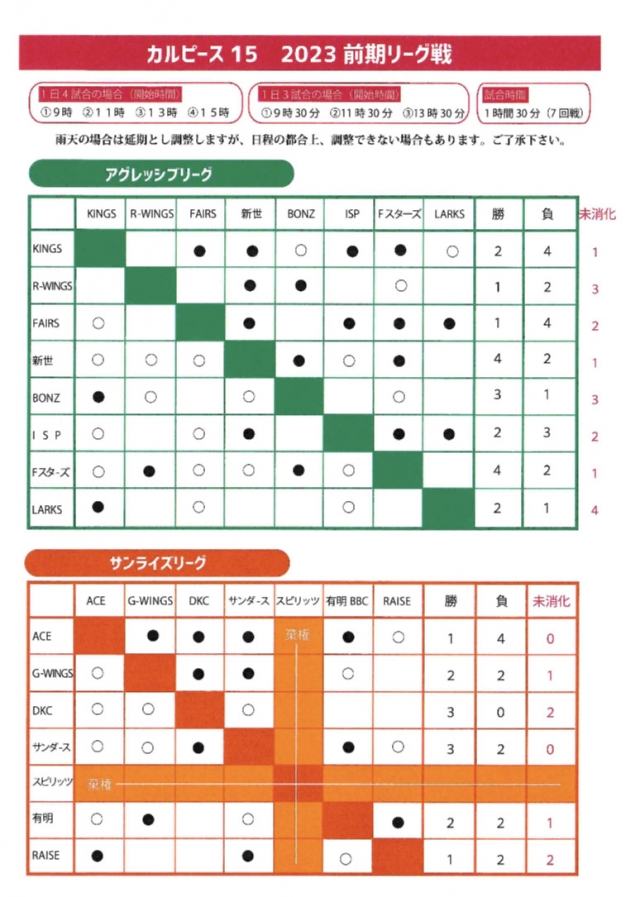 > カルピース15 2023前期リーグ戦途中経過