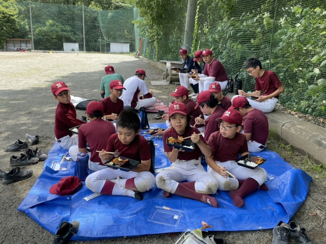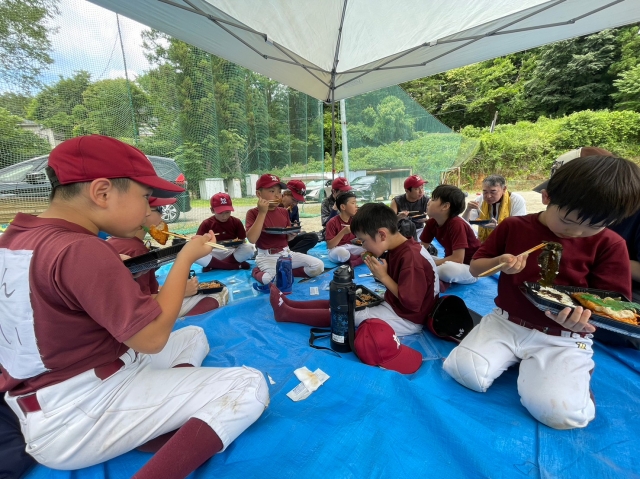 お昼はみんなでグランドでお弁当を食べて、午後の練習へ。
