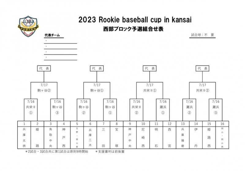 > 第3回 Rookie baseball cup in kansai 西部ブロック予選