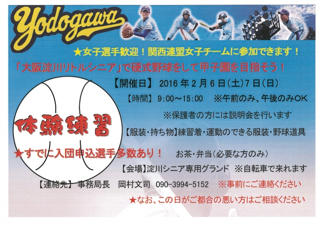体験練習会のご案内(入団希望者増えています!)