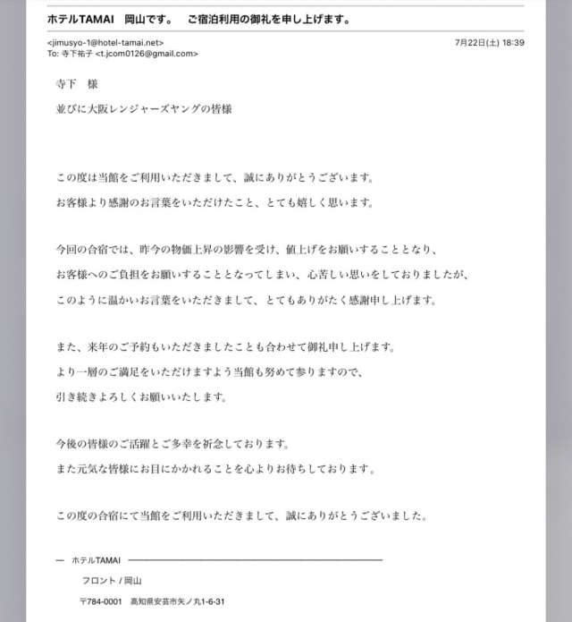 お礼のメールを父兄から送りました所