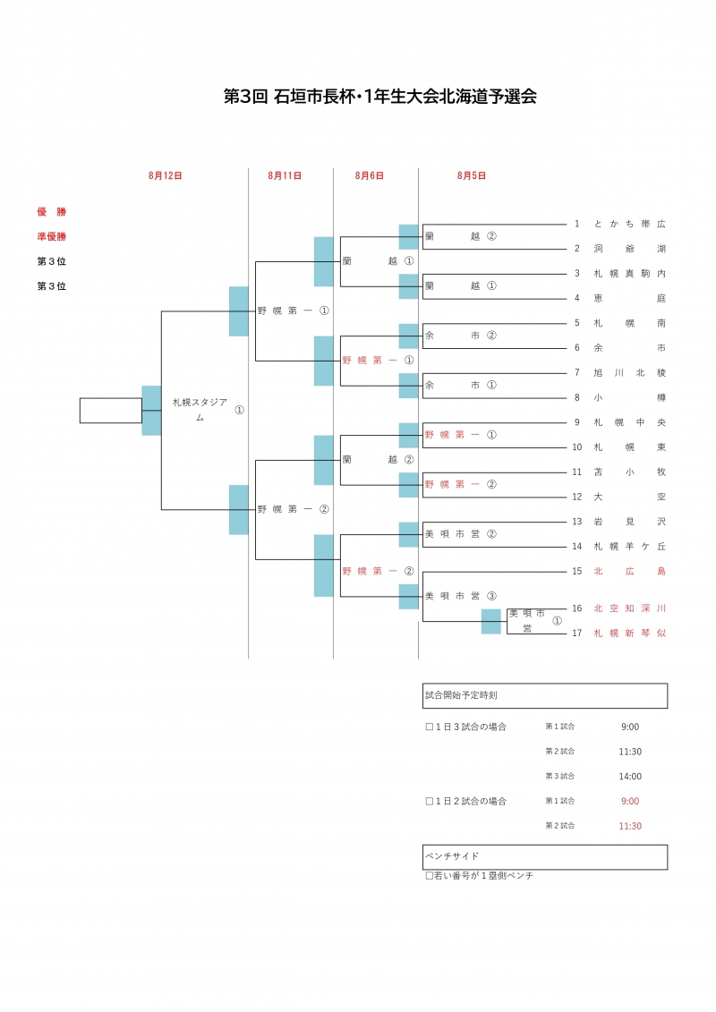 第3回石垣市長杯・1年生大会北海道予選会 トーナメント日程