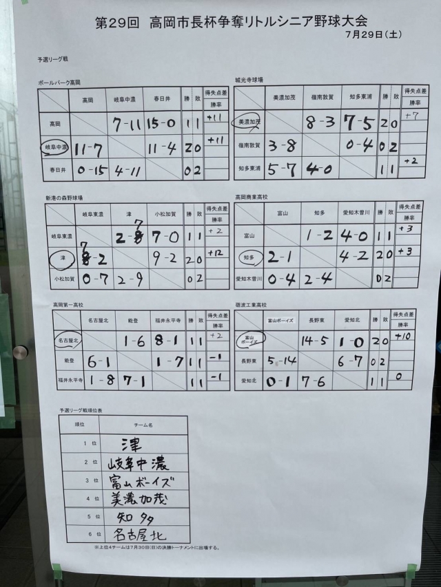 初日のリーグ戦1試合目、知多東浦シニアに8:3で勝利。2試合目の嶺南敦賀シニアに7:5で勝利しました。
