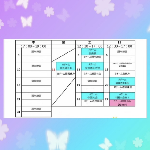 瀬野ソフトボールクラブ8月の予定です🏝️