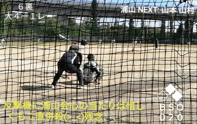 四番浦山芯でとらえた痛烈な打球が不運にも二直併殺(>_<)