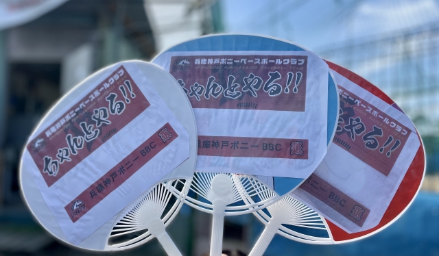 うちわのデザインは、兵庫神戸ポニーのスローガン「ちゃんとやる!!」
