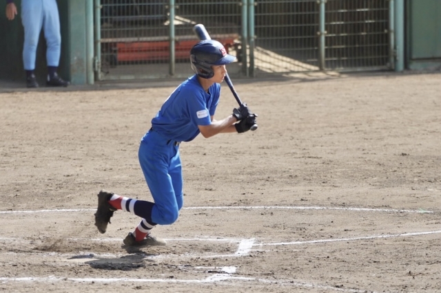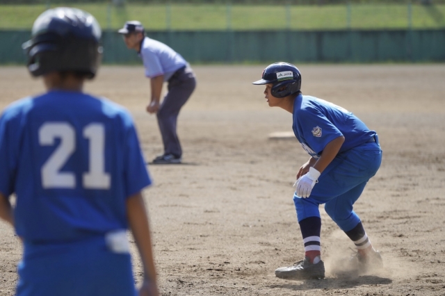 中本牧の初回、2番打者のヒットでチャンスを作り、続く3番打者も連続ヒット。ここで相手外野手がもたついてる間に、2番打者が一気にホームイン。