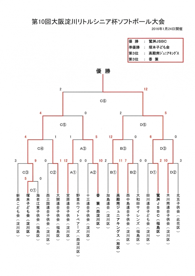 2016年1月24日今、年一番の寒波の中、淀川区・西淀川区・福島区・此花区・旭区から17チームが参加し「第10回大阪淀川リトルシニア杯ソフトボール大会」が盛大に開催されました。