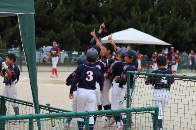 夏に広島県で優勝していて、全国大会出場している強豪の板城さん✨初回、奏太朗がヒットで出塁し盗塁、走って走って1点を先制しましたが、その後逆転を許します💦そして最終回、ランナーを1塁において清史郎のスリーベースで同点に追いつきます✨試合はそのまま2-2の同点となり、最後は抽選勝ち🙏この試合は知輝が好守備でチームを救いました🥰