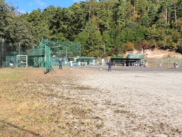 諏訪シーレックス明星球場にて、諏訪シニアさんと練習試合。寒空の中頑張っています。