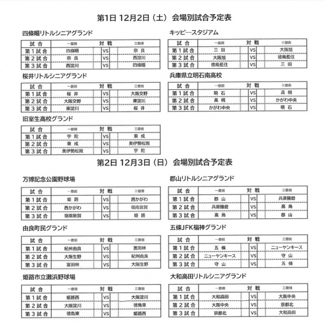 第1回四條畷リトルシニア野球大会 組み合わせ