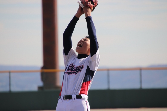岡谷市営球場で3年生が最後のノックをしました。