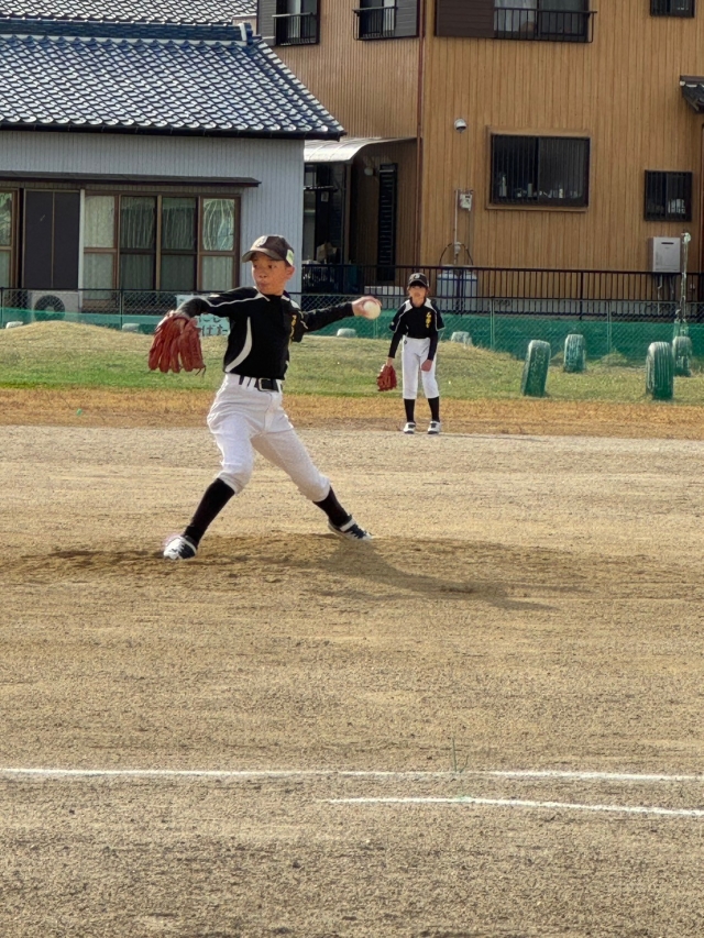 1試合目はASW戦。先日の新人戦では石薬師クラブと同様3位の成績を収めているチーム。先攻の石薬師は、相手のミスやスクイズなどで2点を先制して試合を優位にすすめます。先発は江頭ユウキ。1回、2回と0点に抑えていましたが、3回に突如乱れてしまいます。3四球やエラー、ヒットを浴びるなど6失点で2-6と逆転されてしまいます。最終回にコウダイのタイムリーヒットが出るものの、3-6で敗戦していまいました。
