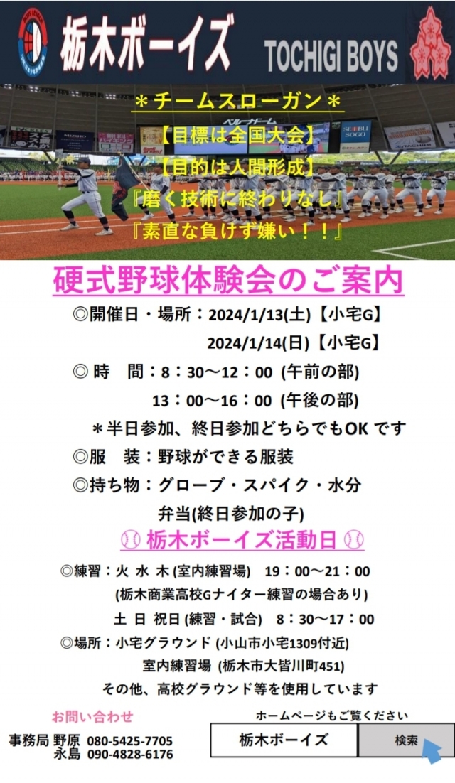 栃木ボーイズ硬式野球体験会を開催します