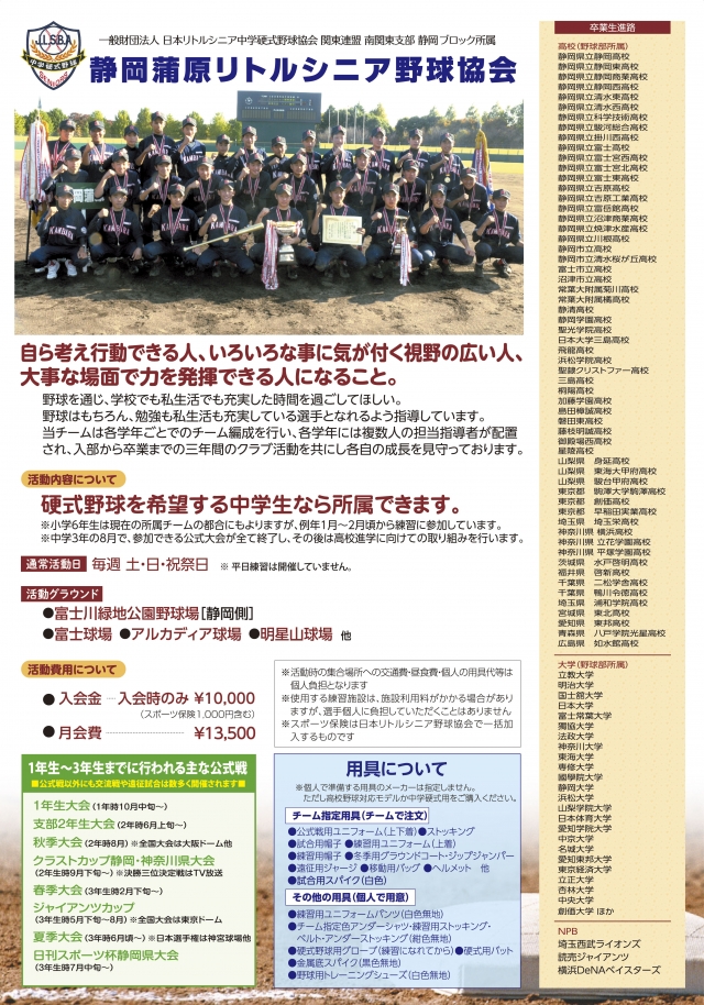 静岡蒲原リトルシニア -日本リトルシニア中学硬式野球協会 関東連盟-