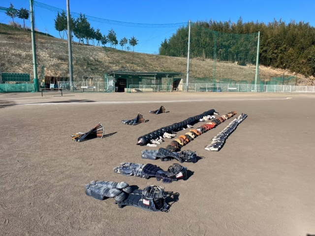 富博記念球場では、今年最後の全体練習が行われた後、役員・指導者、選手、保護者一同にてバット納め式を執り行いました。