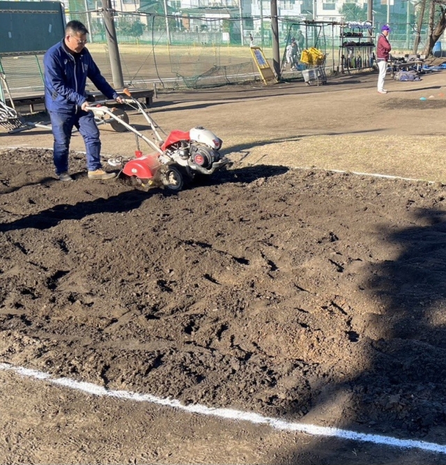 調子に乗り、本グラウンドの一塁線、三塁線もやるぞ‼