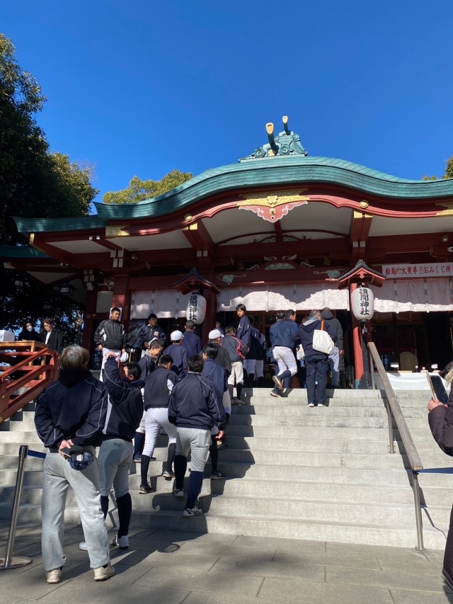 本日は練習前に、グラウンド近くの浅間神社にて必勝祈願の初詣へチーム全員で行ってきました